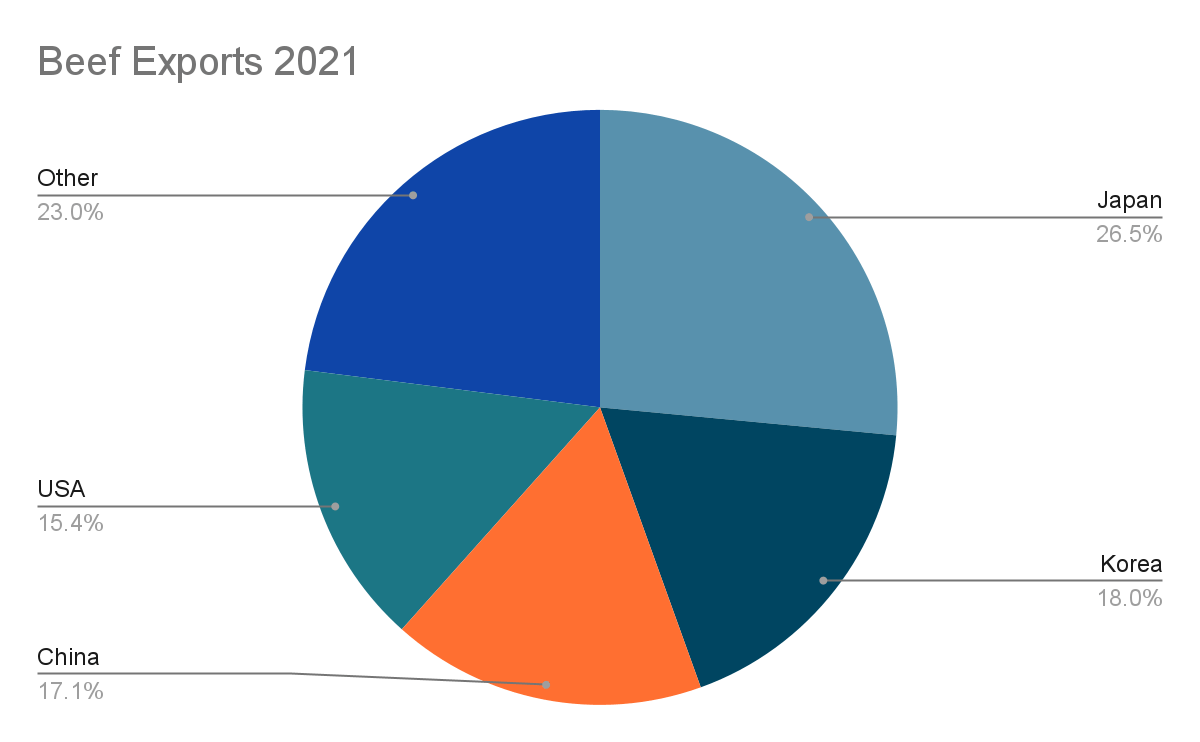 The four major export destinations of beef are China, South Korea, Taiwan and the United States (US).